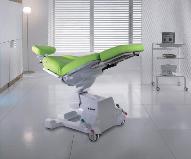 Положение спинки, упора для ног, тренделенбурга регулируется при помощи четырех электрических моторов. Также возможно регулировать положение подставки для ног в ручном режиме. Кроме этого, производитель предусмотрел функцию автоматического возврата разложенной кушетки в изначальное положение. Также модель имеет съемный регулируемый подголовник, который обеспечивает комфорт для пациента и необходимое рабочее пространство для специалиста.