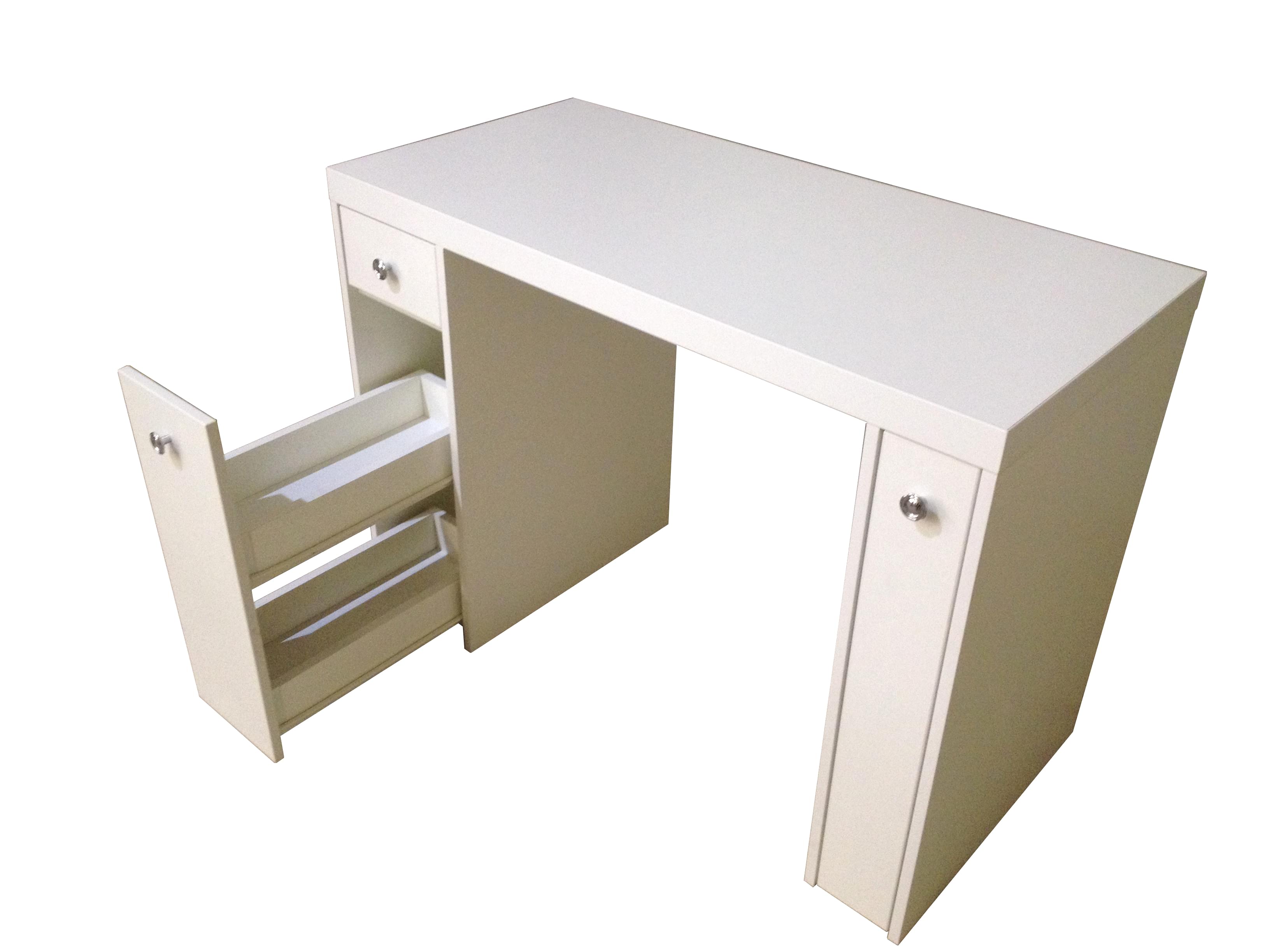 Маникюрный столик «Сабина» - это удобное рабочее место для двух мастеров маникюра. Столешница широкая, что позволяет комфортно здесь работать и размещать все необходимое – подставки для лаков, лампы и прочее. Оба рабочих места идентичны.