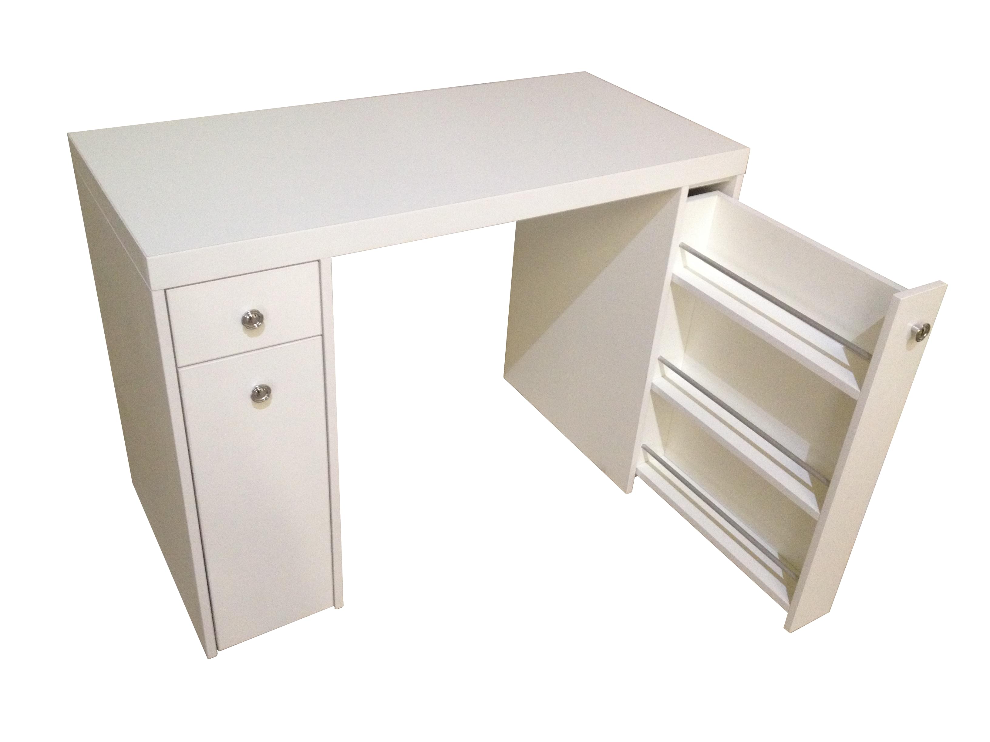 Одно из главных достоинств маникюрного стола «Мариэтта» - его вместительность. Здесь есть 4 вместительных выдвижных ящика, полка посредине и две боковых – с выдвижными подставками, которые можно извлечь и освободить больше места в высоту. Но самое главное – вместительная боковая стойка для лаков и других маникюрных средств.