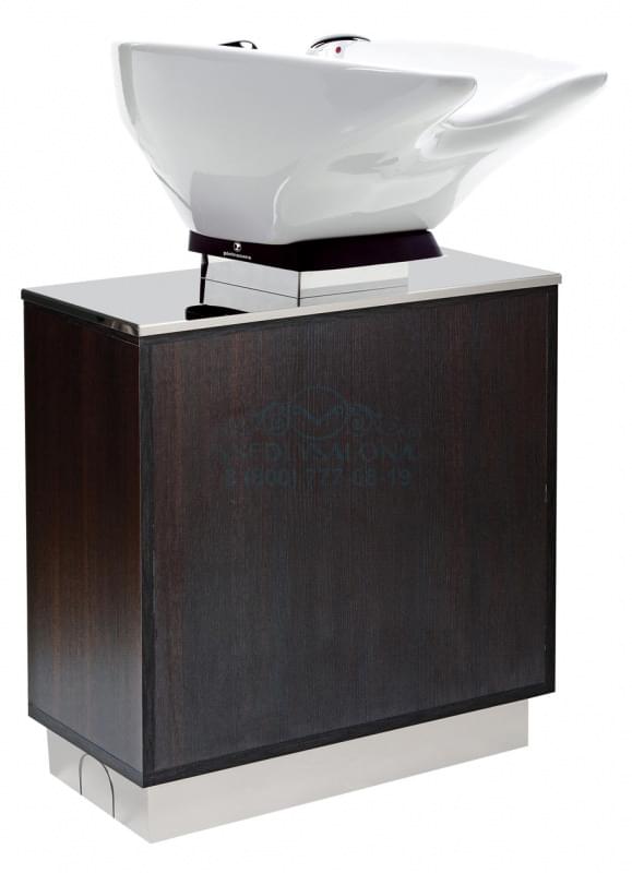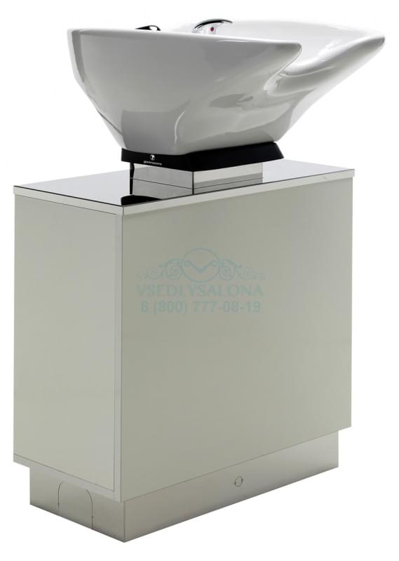 Мойка парикмахерская для мытья волос на стойке без кресла. Комплектуется глубокой белой или черной керамической раковиной, с регулировкой угла наклона, комплектом смесителя с хромированной лейкой душа. Стойка прямоугольной формы цвета венге, белого или черного с полкой.