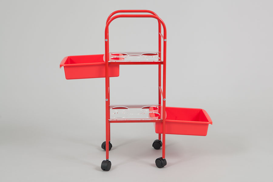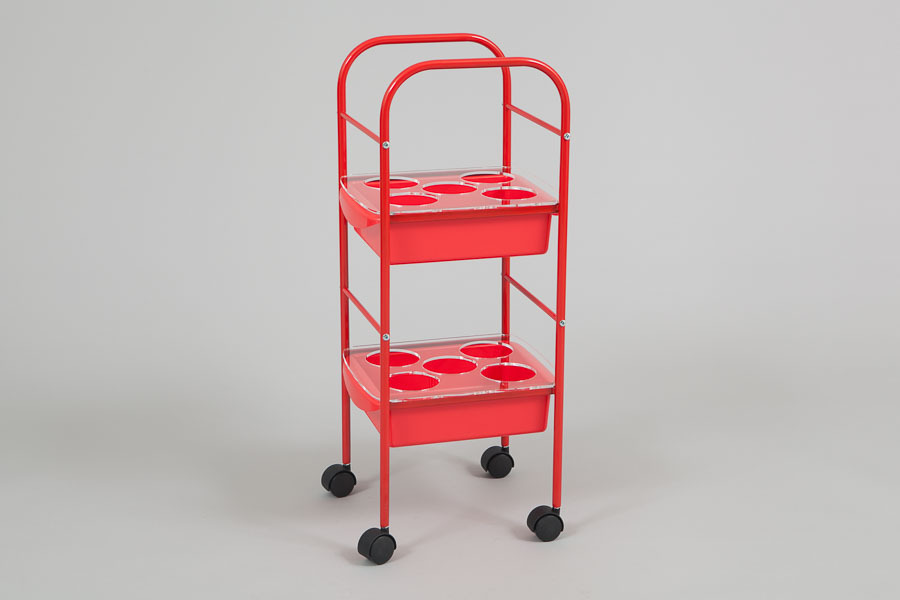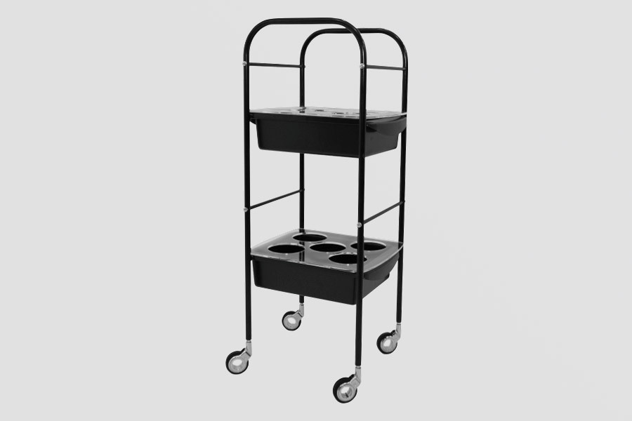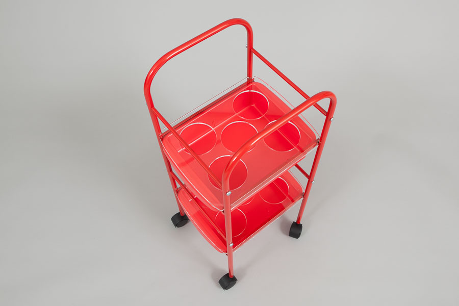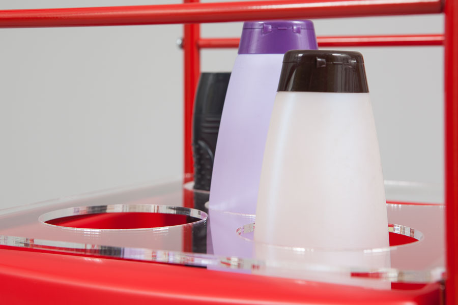 На удобной малогабаритной тележке "Shampoolance" можно разместить10 шампуней, бальзамов или других косметических средств.