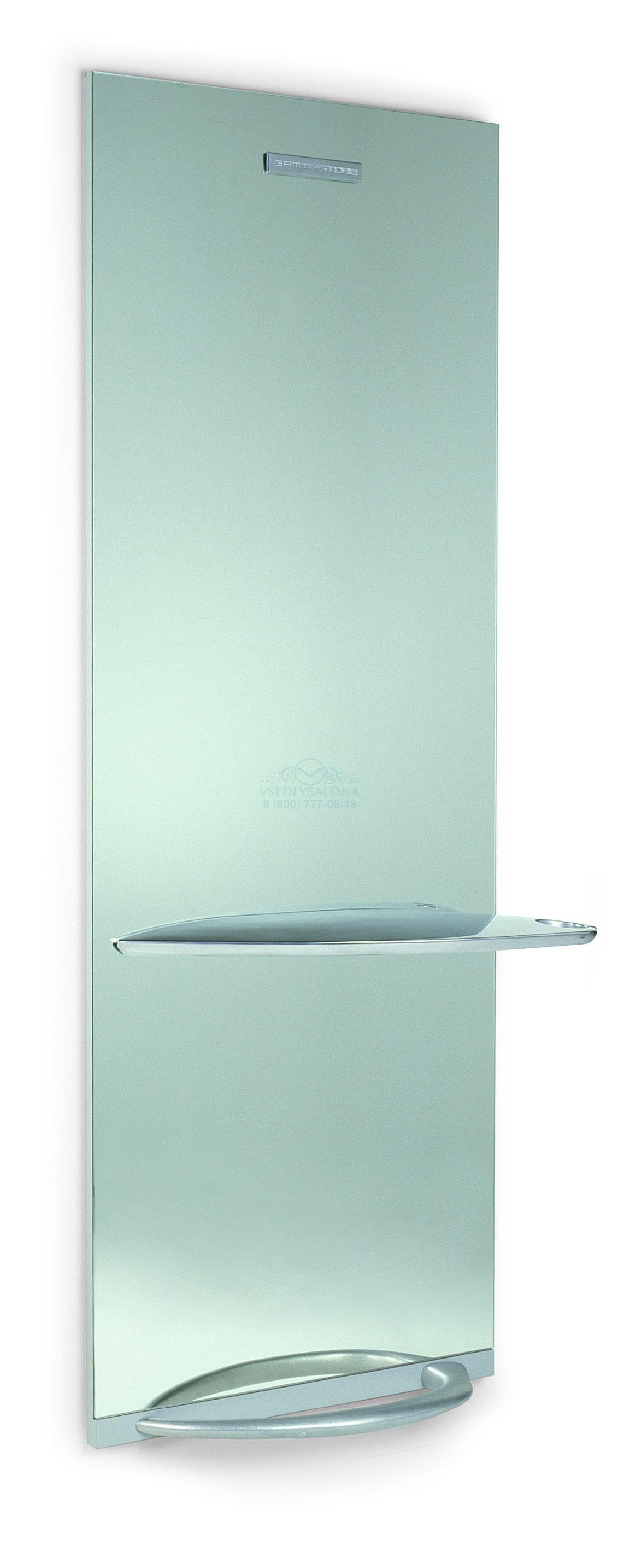 Зеркало парикмахерское, одностороннее, крепление к стене. Хромированная столешница и металлическая подставка под ноги. Размер: 187х68х27